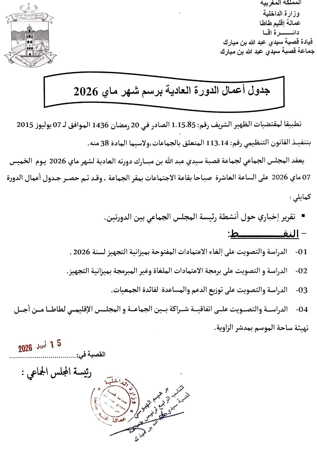 جدول اعمال الدورة العادية لشهر ماي 2026