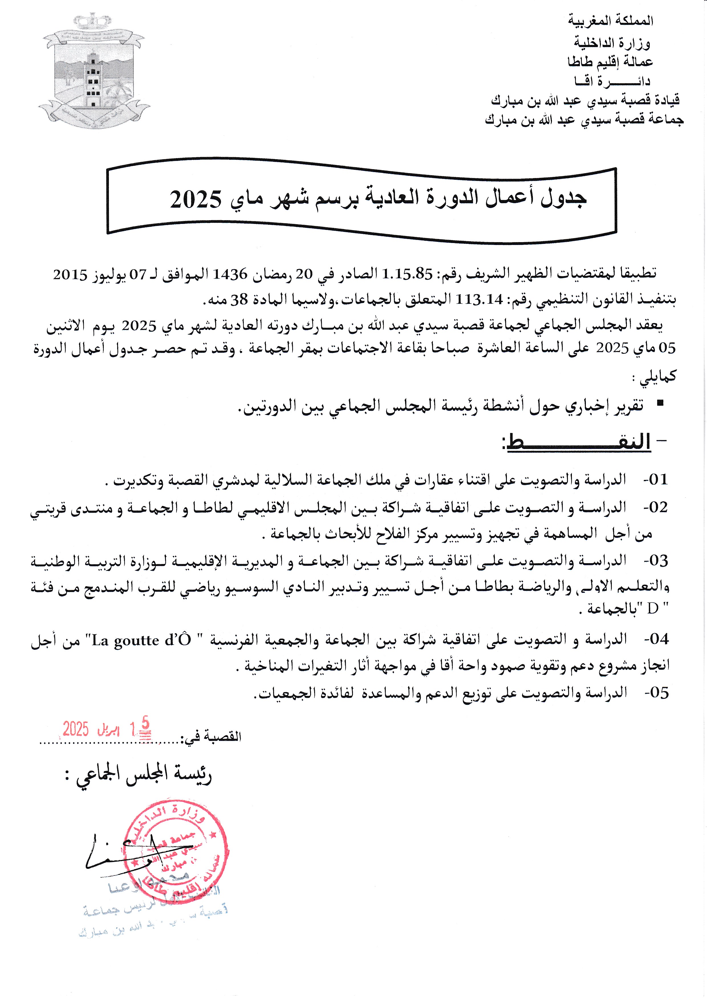 جدول اعمال الدورة العادية لشهر ماي 2025