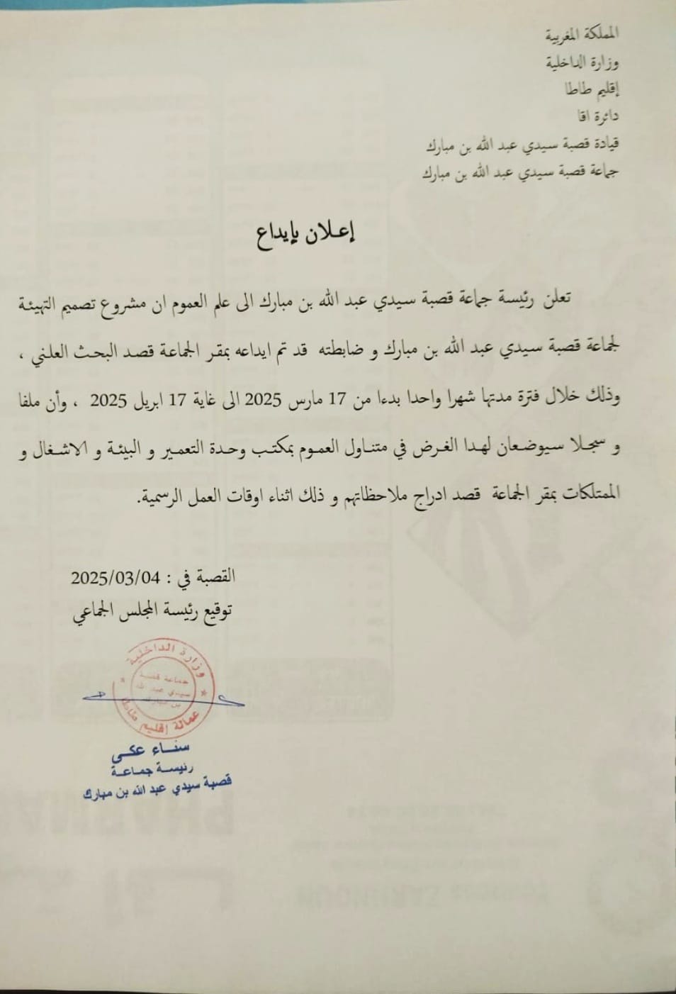 مشروع تصميم تهيئة جماعة قصبة سيدي عبدالله بن مبارك
